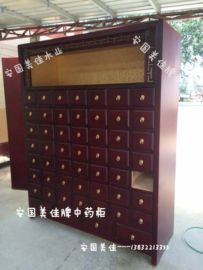 中藥柜用料---框架和抽屜選用優(yōu)質(zhì)樟松木,抽屜下面有五合板封底,防串味,抽屜底選用九厘板,中藥柜的后背兩側(cè)頂部選用五合板。